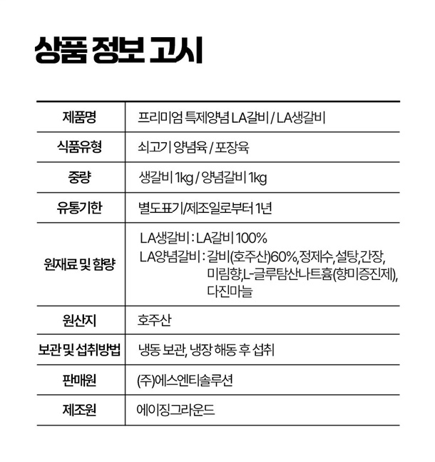 * 구성 : LA 생갈비 1kg