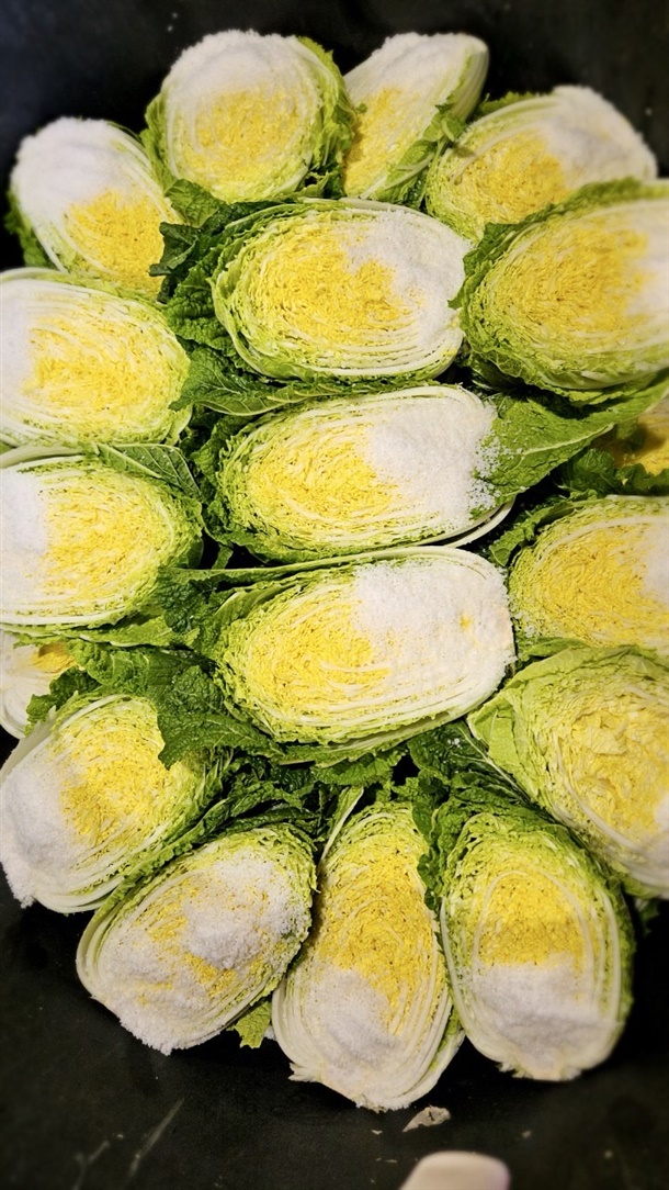 직접농사를 지어서 싱싱하고 맛좋은배추로 절임하며