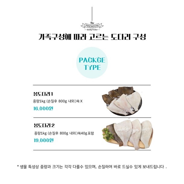 2. 봄도다리 (가열조리용) 3~4미 / 손질 후 800g 내외 + 쑥 40g
