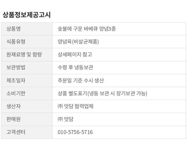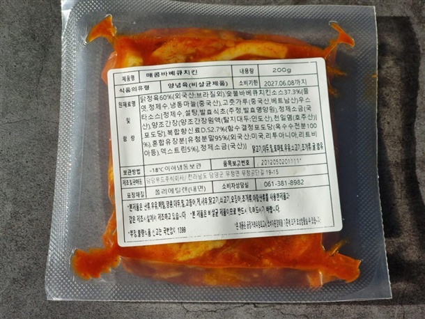 약간매콤 바베큐치킨 - 닭정육 60%(외국산:브라질외), 숯불바베큐치킨소스 37.3%