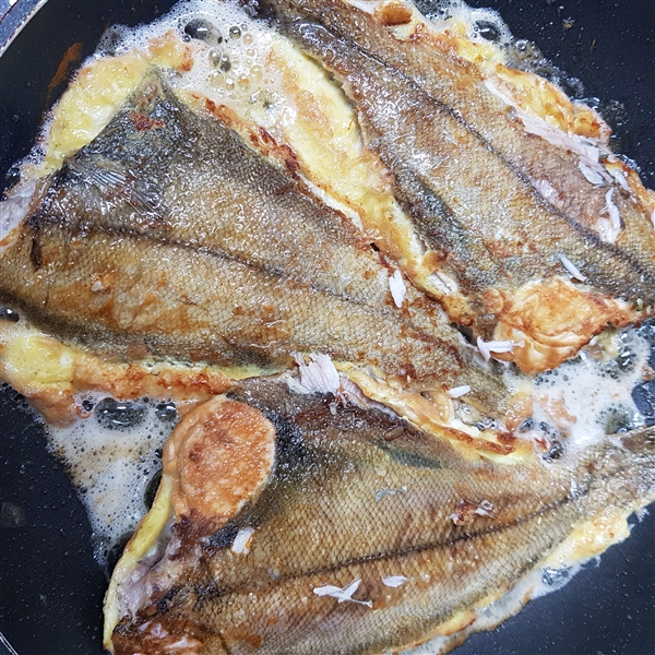 기름 넉넉~하게 두르시고 튀기듯이 구워내시면