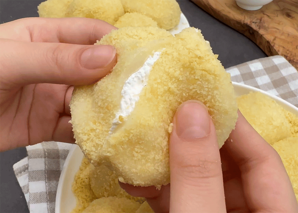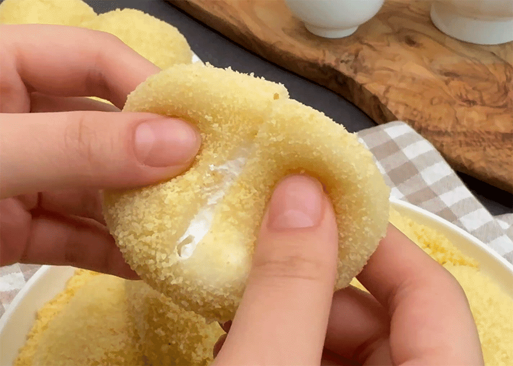 카스텔라 가루를 겉면에 입혀 고소함주고
