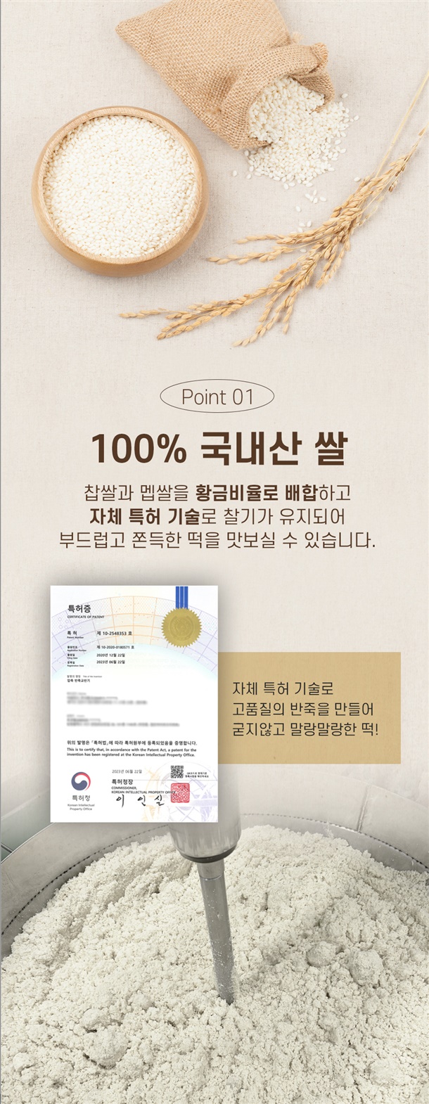 ✔100% 국내산 쌀로 만들어 찹쌀떡의 쫀득함과