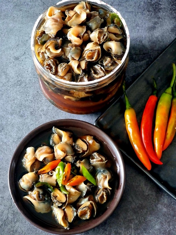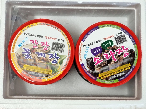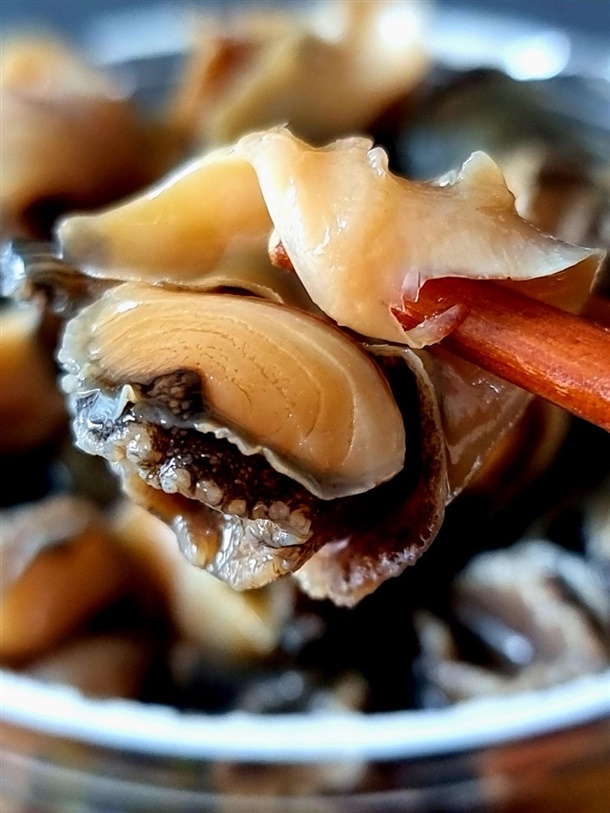 원재료명 및 함량 : 소라 50%(중국, 터키, 우크라이나), 간장 30%{탈지대두(미국산), 밀(미국산), 정제소금(국내산), 액상과당, 카라멜색소}, 물엿 15%, 고추(국내산)2%, 생강(국내산)1.5%, 마늘(국내산)1.5%