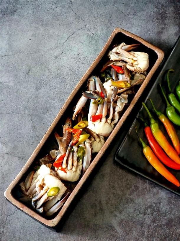 원재료명 및 함량 : 꽃게 50%(외국산:바레인,튀니지,중국), 간장 30%{탈지대두(미국산), 밀(미국산), 정제소금(국내산), 액상과당, 카라멜색소}, 물엿 15%, 고추(국내산)2%, 생강(국내산) 1.5%