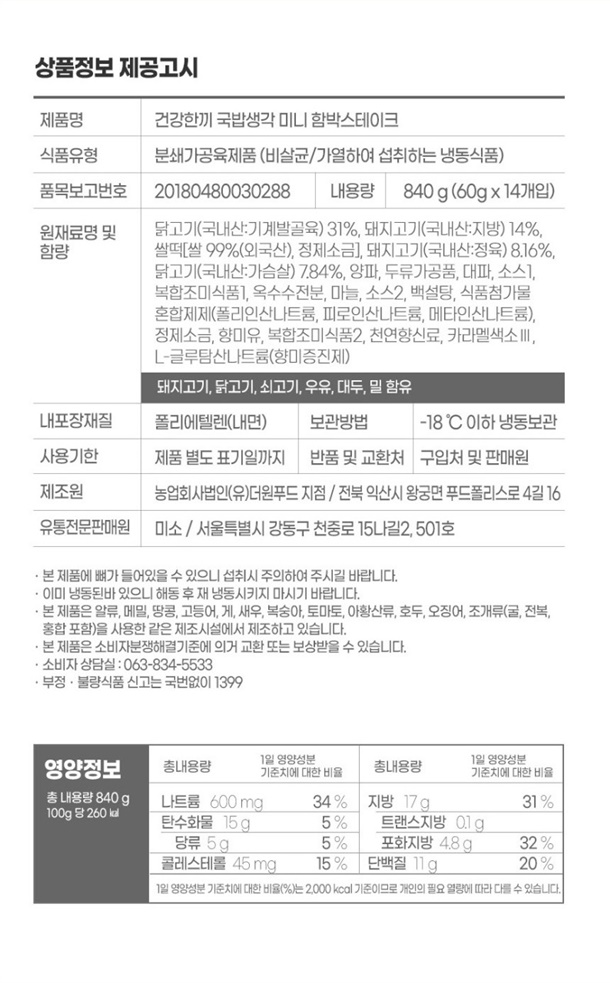 미니 함박스테이크 840g (60g x 14개입) 2봉지 (1,680g)