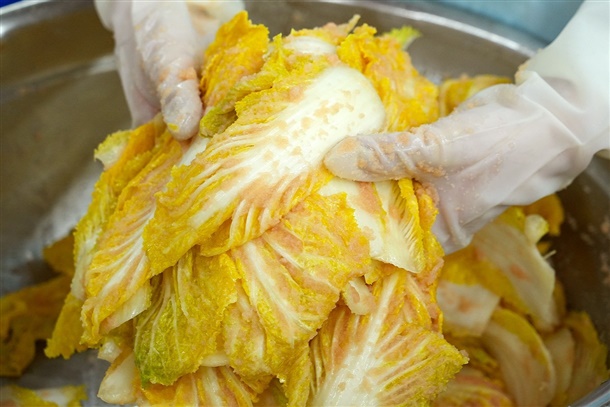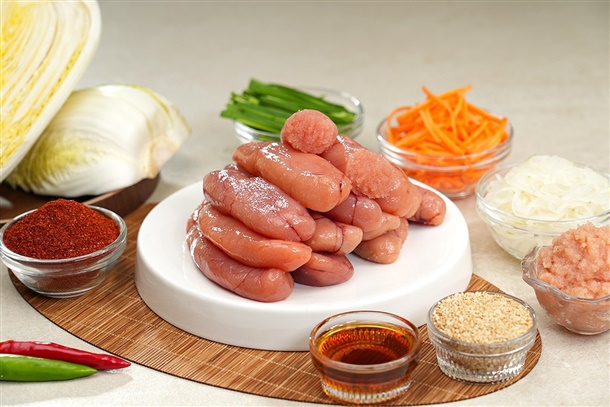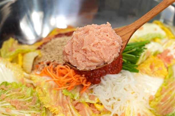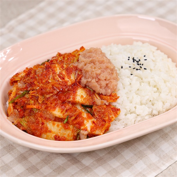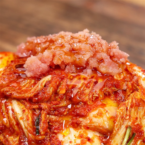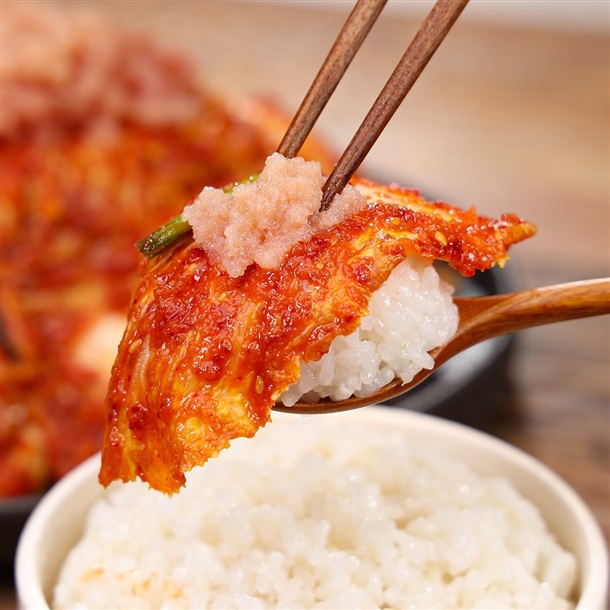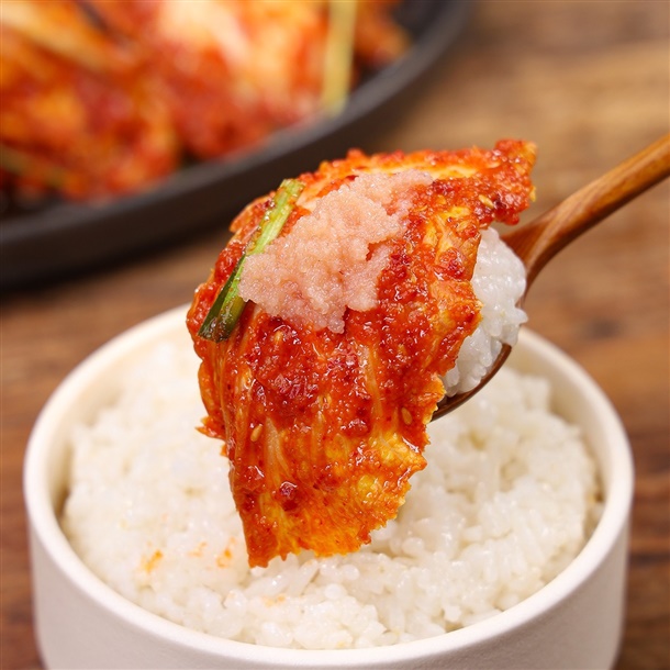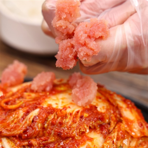 김치 양념의 염도를 낮춰 명란의 짠맛은 자연스럽게!
