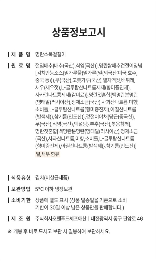 #명란이소복히올라간_특별한겉절이 #명란소복겉절이 #익일출고