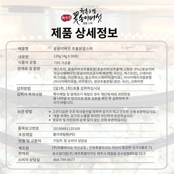 💖100% 국내산 꽃송이버섯을 주원료로 만들었습니다.