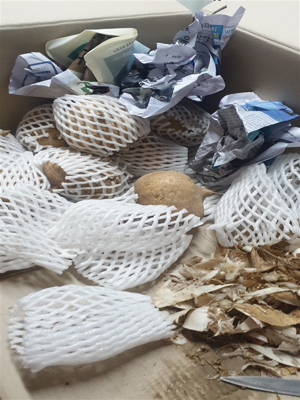 바람이 잘 통하는 바구니에 옮겨담아 서늘한 곳에 보관하시면 1개월 이상도 드실 수 있다고 하니 참고해주세요 ^^