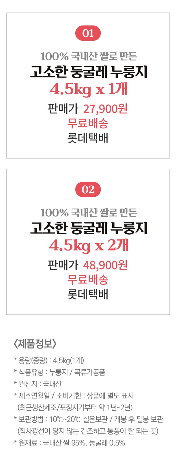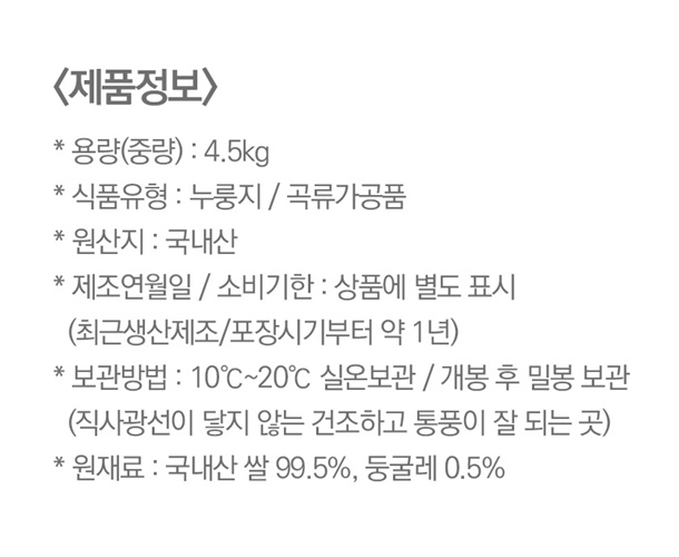 | 1-5. 원재료명 및 함량(농수산물의 원산지 표시에 관한 법률에 따른 원산지 표시 포함) | 쌀(국내산) |